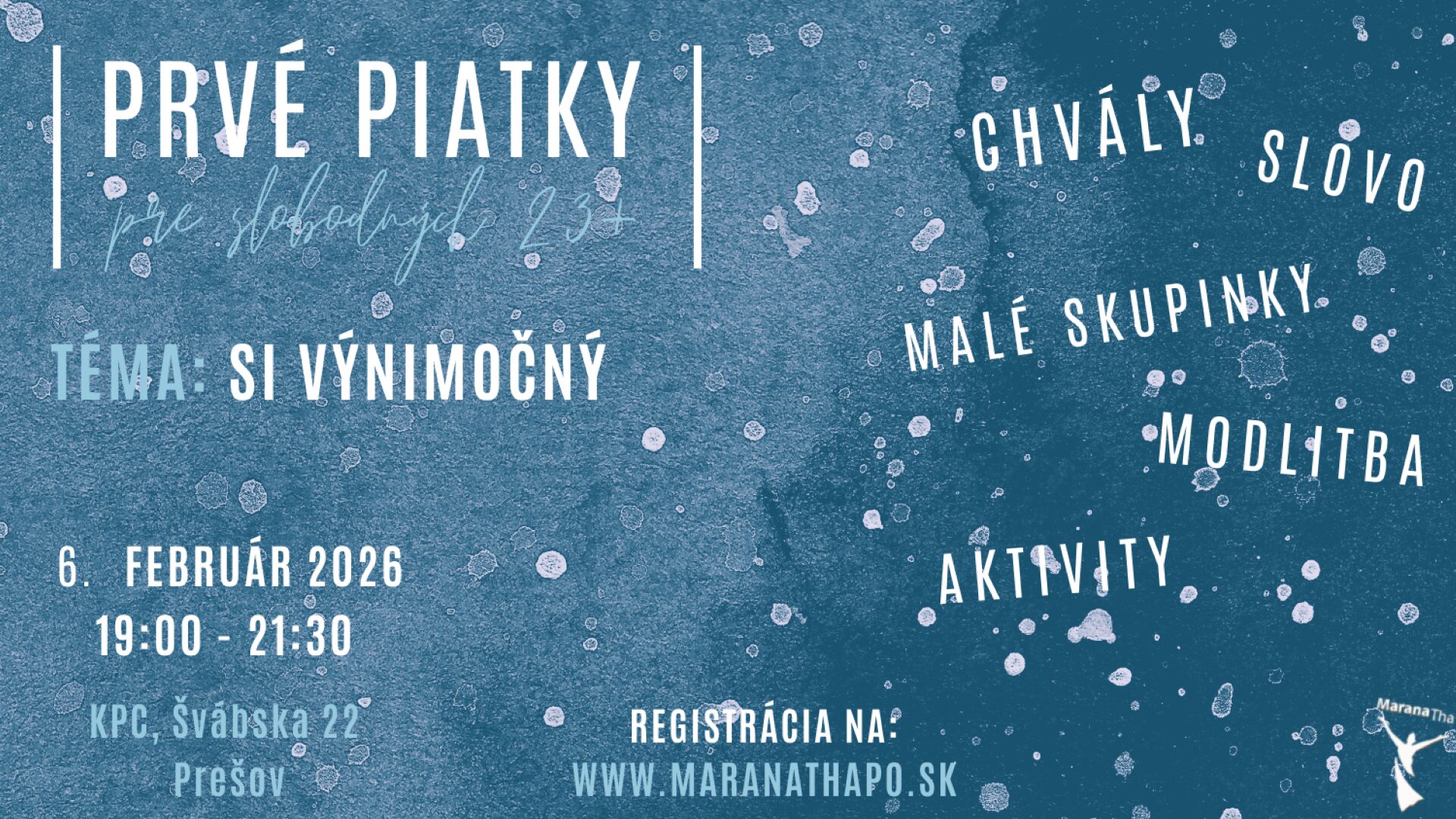 Milovaní, chceme pokračovať v našich pravidelných prvopiatkových stretnutiach. Pozývame vás na to najbližšie, ktoré sa uskutoční 6.2. Miesto: KPC sv. Jána Pavla II., Prešov-Šváby Čas: 19:00 - 21:30 Predbežný program: Služba slobodným vznikla v r. 2019 pod patronátom sestier františkánok na základe pápežskej exhortácie Christus Vivit a odvtedy pokračuje v rôznych formách dodnes. Cieľom je […]